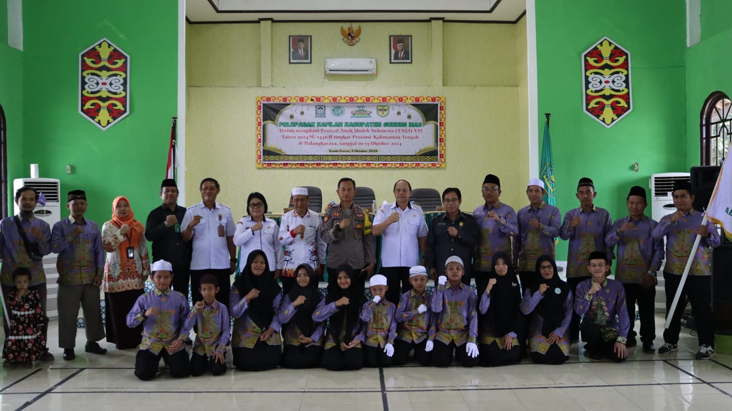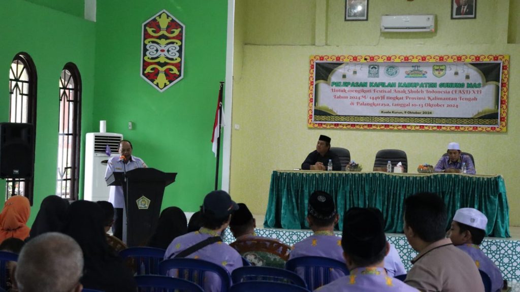 MMCGumas – Kuala Kurun – Asisten Sekretariat Daerah (Setda) Bid. Pemerintahan dan Kesra, Lurand, melepas Kafilah Festival Anak Sholeh Indonesia (FASI) XII tingkat Provinsi Kalimantan Tengah (Kalteng), di Aula Kantor Kementerian Agama Kabupaten Gunung Mas (Gumas), Rabu (9/10/2024).