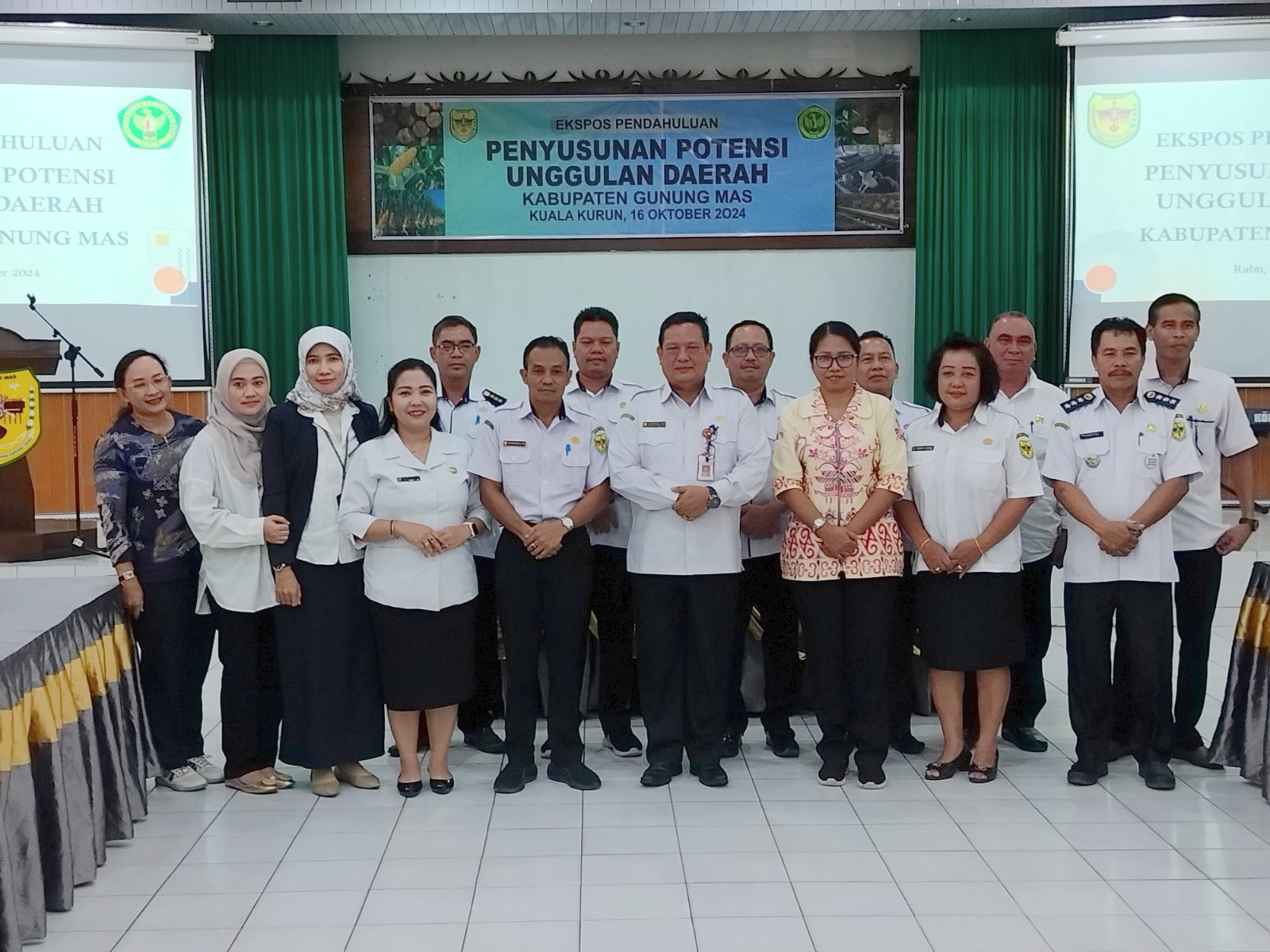 MMCGUMAS – Pemerintah Kabupaten (Pemkab) Gunung Mas (Gumas) menggelar acara Ekspos Penyusunan Potensi Unggulan Daerah dengan dihadiri Pj. Bupati Gumas yang diwakili Staf Ahli Bupati, Guanhin, perwakilan Kepala Perangkat Daerah, seluruh Camat, Lurah dan tamu undangan lainnya. Kegiatan dipusatkan di Aula Bapperida Gumas pada (16/10/2024).