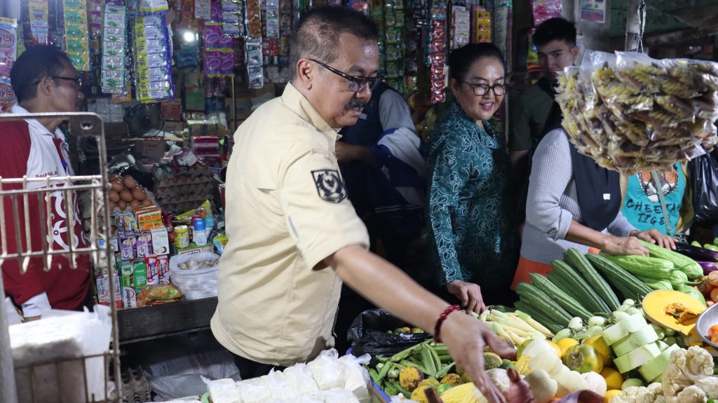 Kuala Kurun – Dalam rangka memperingati Hari Tani dan Hari Pangan Sedunia, Penjabat (Pj.) Bupati Gunung Mas (Gumas), Herson B. Aden, didampingi Forkopimda Gumas, Sekretaris Daerah, dan Kepala Perangkat Daerah, menyempatkan diri melakukan pemantauan harga kebutuhan pokok masyarakat, dipasar lama Kuala Kurun. Peninjauan dilakukan seusai kegiatan Hari Tani dan Hari Pangan sedunia yang berlokasi ditaman Kota, Jumat, (1/11/2024).