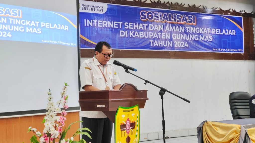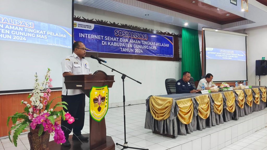MMCGumas – Kuala Kurun – Pemerintah Kabupaten (Pemkab) Gunung Mas (Gumas) melalui Dinas Komunikasi, Informatika, Persandian dan Statistik (Diskominfosantik) Kab. Gumas, menggelar kegiatan Sosialisasi Internet Sehat dan Aman Tingkat Pelajar di Kab. Gumas Tahun 2024, kegiatan dilaksanakan di Aula Bapperida Kab. Gumas, Rabu, (11/12/2024).
