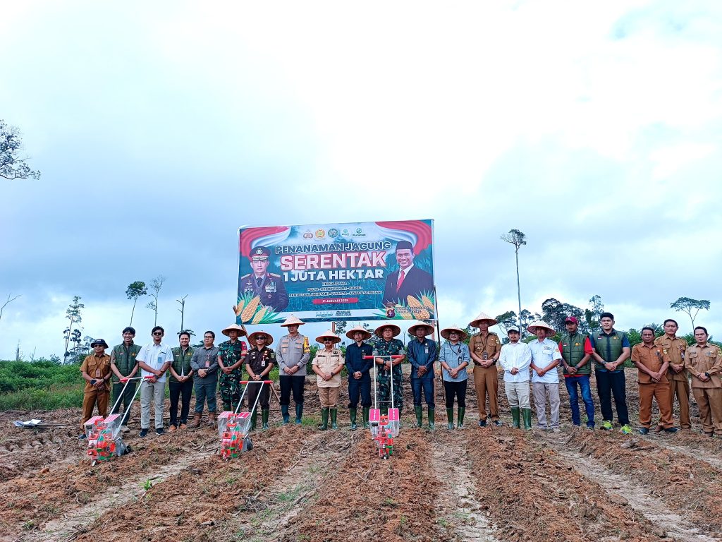 MMCGumas – Kuala Kurun – Polres Gunung Mas bersama Pemerintah Kabupaten Gunung Mas, Kementerian Pertanian RI, GAPKI, Perhutani, Inhutani, pihak swasta, dan kelompok tani swadaya, menggelar penanaman jagung serentak seluas 1 juta hektar dalam rangka Program Ketahanan Pangan Nasional tahun 2025, Selasa (21/1/2025).
