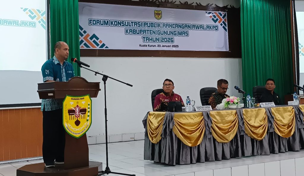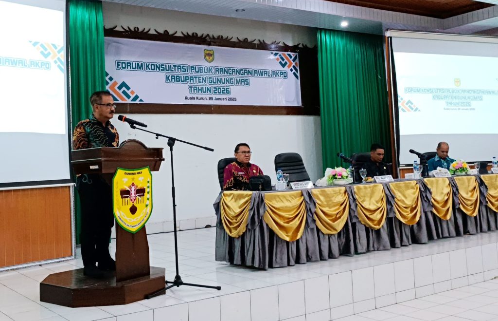 MMCGumas – Kuala Kurun – Pemerintah Kabupaten Gunung Mas (Gumas) melalui Badan Perencanaan Pembangunan, Penelitian, dan Pengembangan Daerah (Bapperida) menggelar Forum Konsultasi Publik Rancangan Awal Rencana Kerja Pemerintah Daerah (RKPD) Tahun 2026. Acara ini berlangsung di Aula Bapperida, pada Kamis, (23/1/2025).