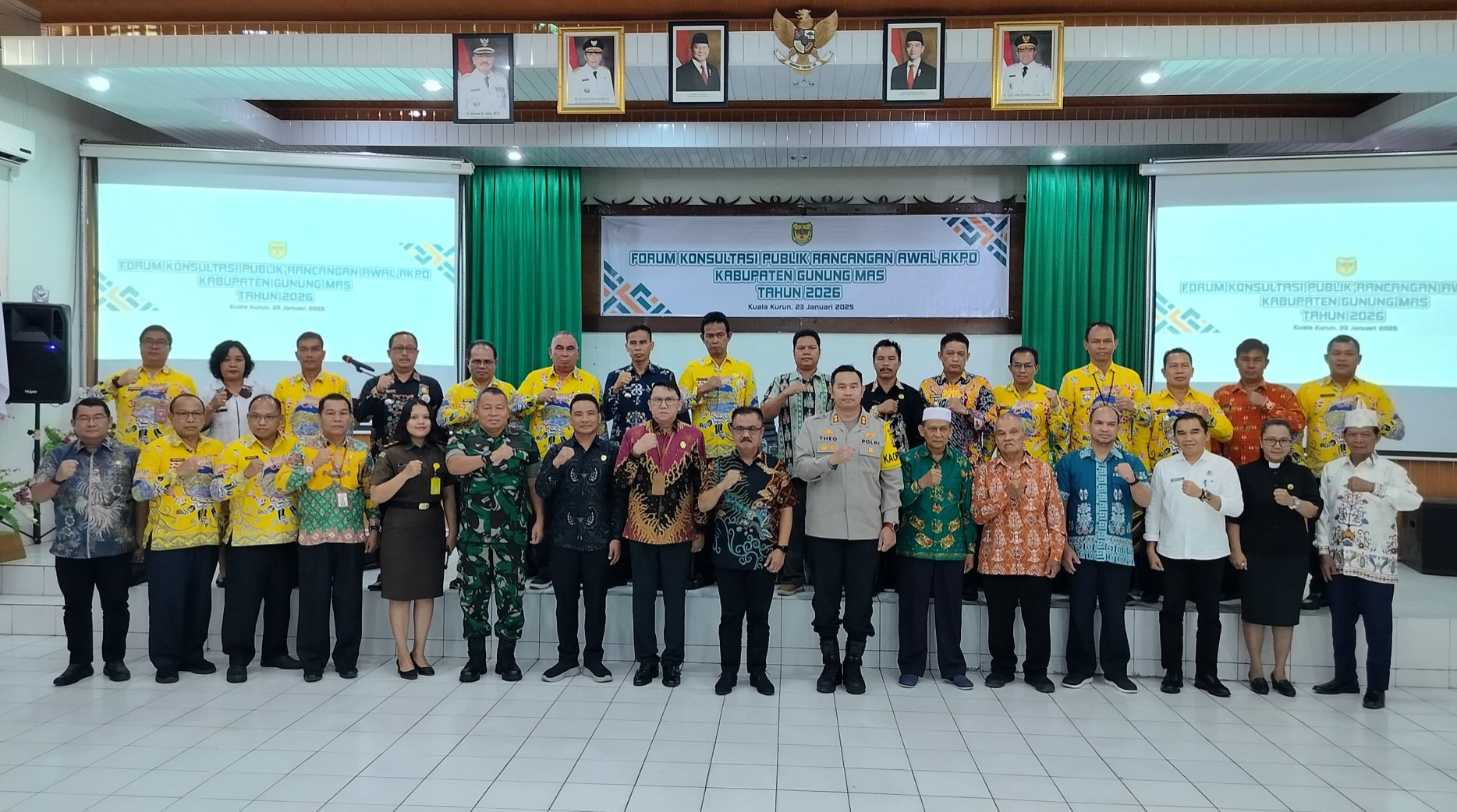 Foto Bersama : PJ Bupati Gumas, bersama para Pemangku Kepentingan di Aula Bapperida Gumas Kamis, (23/1/2025).