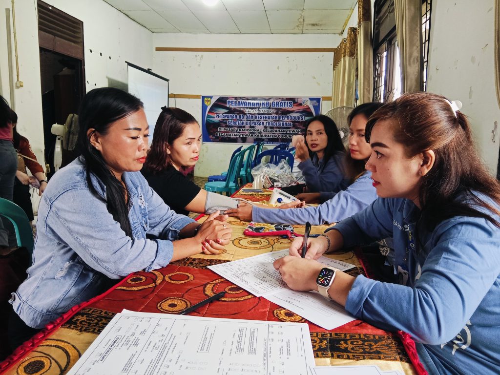MMCGumas – Kuala Kurun – Pemerintah Kabupaten Gunung Mas melalui Dinas Pengendalian Penduduk, Keluarga Berencana, Pemberdayaan Perempuan dan Perlindungan Anak (DP2KBP3A) turut berpartisipasi dalam kegiatan Pelayanan KB Gratis dan Penyuluhan Kesehatan Reproduksi Serentak di Pasar Tradisional Kelurahan Tewah, kelurahan Tewah, Kecamatan Tewah, Rabu (26/02/2025).
