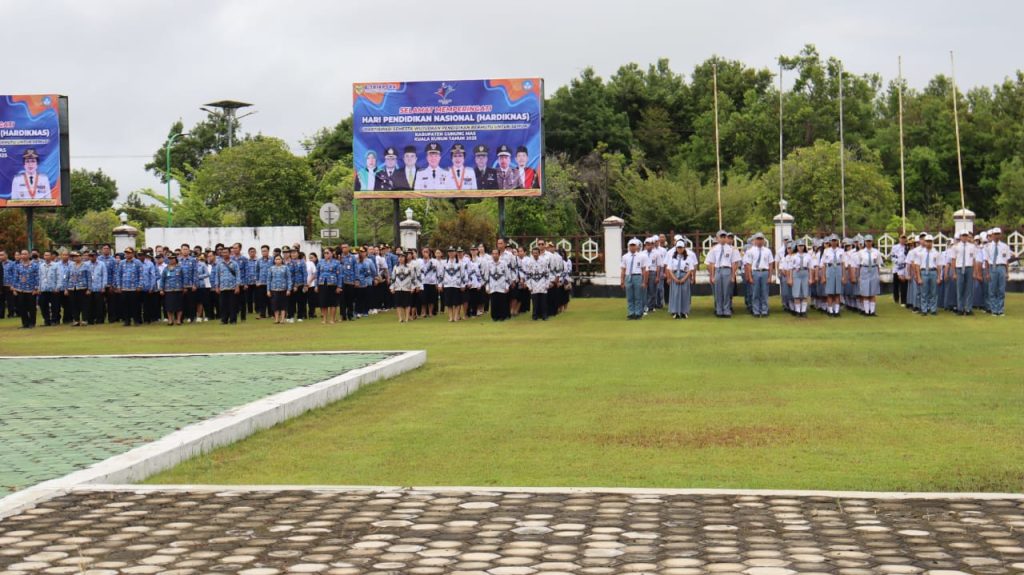 MMCGumas – Kuala Kurun – Pemerintah Kabupaten (Pemkab) Gunung Mas (Gumas) menggelar Upacara Peringatan Hari Pendidikan Nasional (Hardiknas) Tahun 2025, di Halaman Kantor Bupati Gumas pada Jumat (02/05/2025). Upacara yang berlangsung khidmat tersebut dipimpin langsung oleh Wakil Bupati Gumas, Efrensia L.P. Umbing.