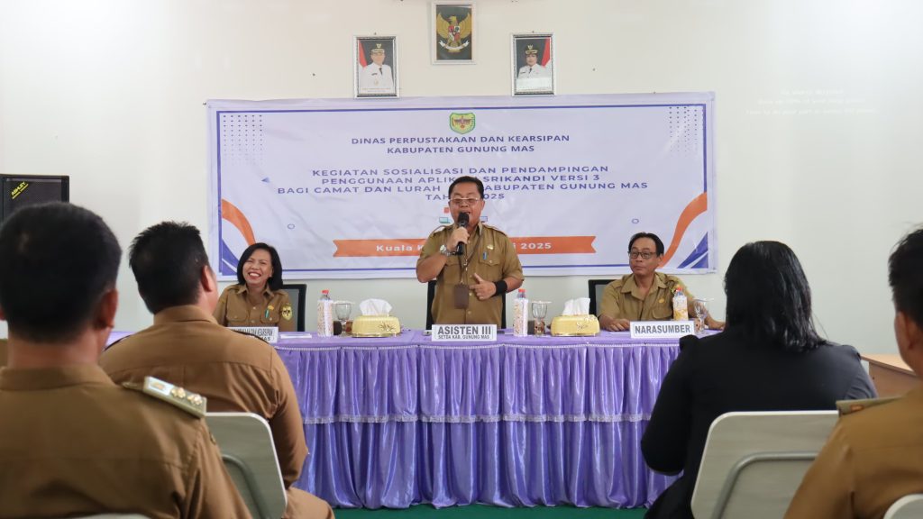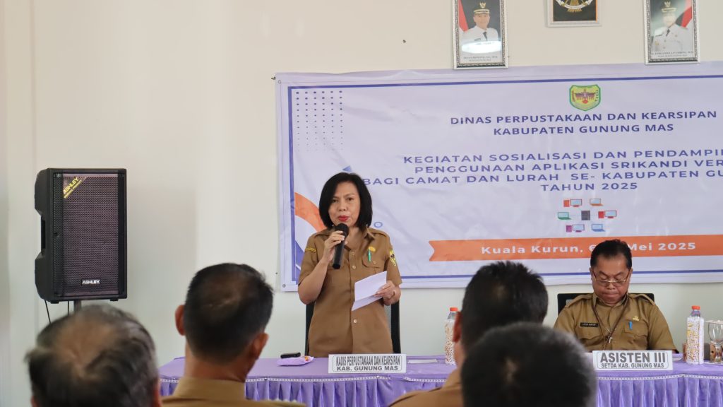 MMCGumas – Kuala Kurun – Pemerintah Kabupaten (Pemkab) Gunung Mas (Gumas) menggelar kegiatan sosialisasi dan pendampingan Aplikasi Srikandi versi 3 bagi Camat dan Lurah se-Kabupaten Gunung Mas yang dilaksanakan di Aula Rapat Lantai 3 Gedung Perpustakaan Umum dan Kearsipan, Selasa (6/4/2025).