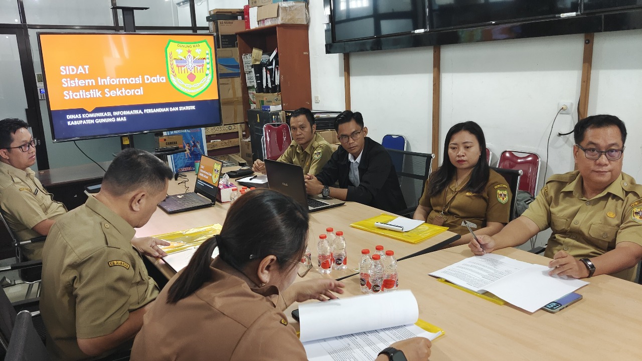 Kepala Diskominfosantik Gumas, Ruby Haris, didampingi Kepala Bidang Statistik Diskominfosantik Gumas, Purnama, dalam sambutannya mengatakan bahwa Sistem Informasi Data Statistik Sektoral (SIDAT) sudah ada sejak tahun 2019 yang mana terus dikembangkan hingga sekarang, dan terus dikelola oleh Diskominfo Kab. Gumas.