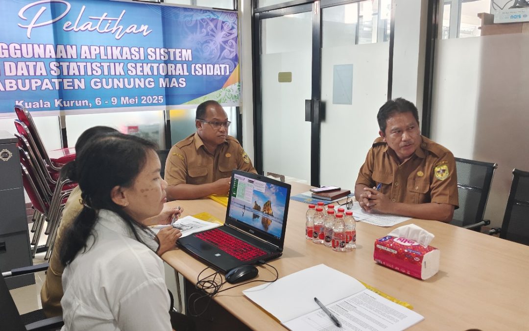 mmc.gunungmaskab.go.id- Dalam usaha mewujudkan Satu Data Kabupaten Gunung Mas (Gumas) yang selaras dengan Satu Data Indonesia, Dinas Komunikas, Informatika, Persandian dan Statistik (Diskominfosantik) Kab. Gumas menggelar kegiatan Pelatihan Penggunaan Aplikasi SIDAT Tahun 2025 yang bertempat di Ruang Rapat Diskominfosantik Kab. Gumas, Selasa (06/05/2025).