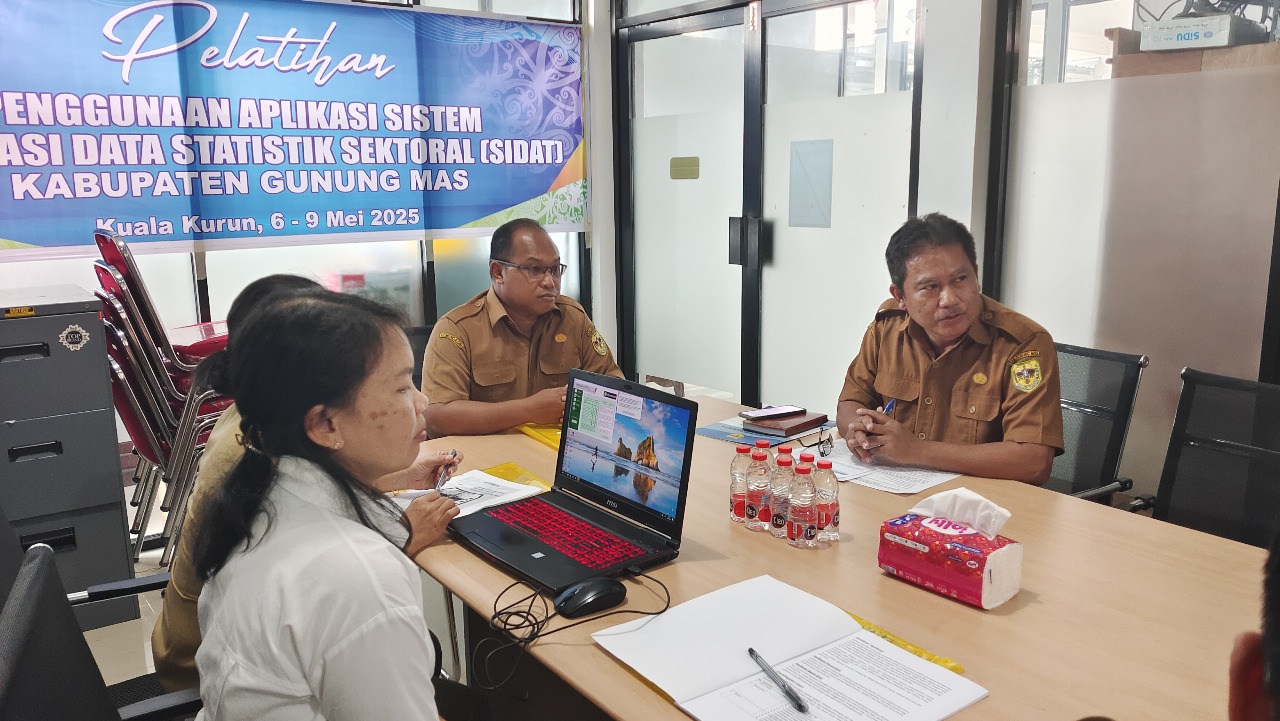 Kepala Diskominfosantik Gumas, Ruby Haris, didampingi Kepala Bidang Statistik Diskominfosantik Gumas, Purnama, dalam sambutannya mengatakan bahwa Sistem Informasi Data Statistik Sektoral (SIDAT) sudah ada sejak tahun 2019 yang mana terus dikembangkan hingga sekarang, dan terus dikelola oleh Diskominfo Kab. Gumas.