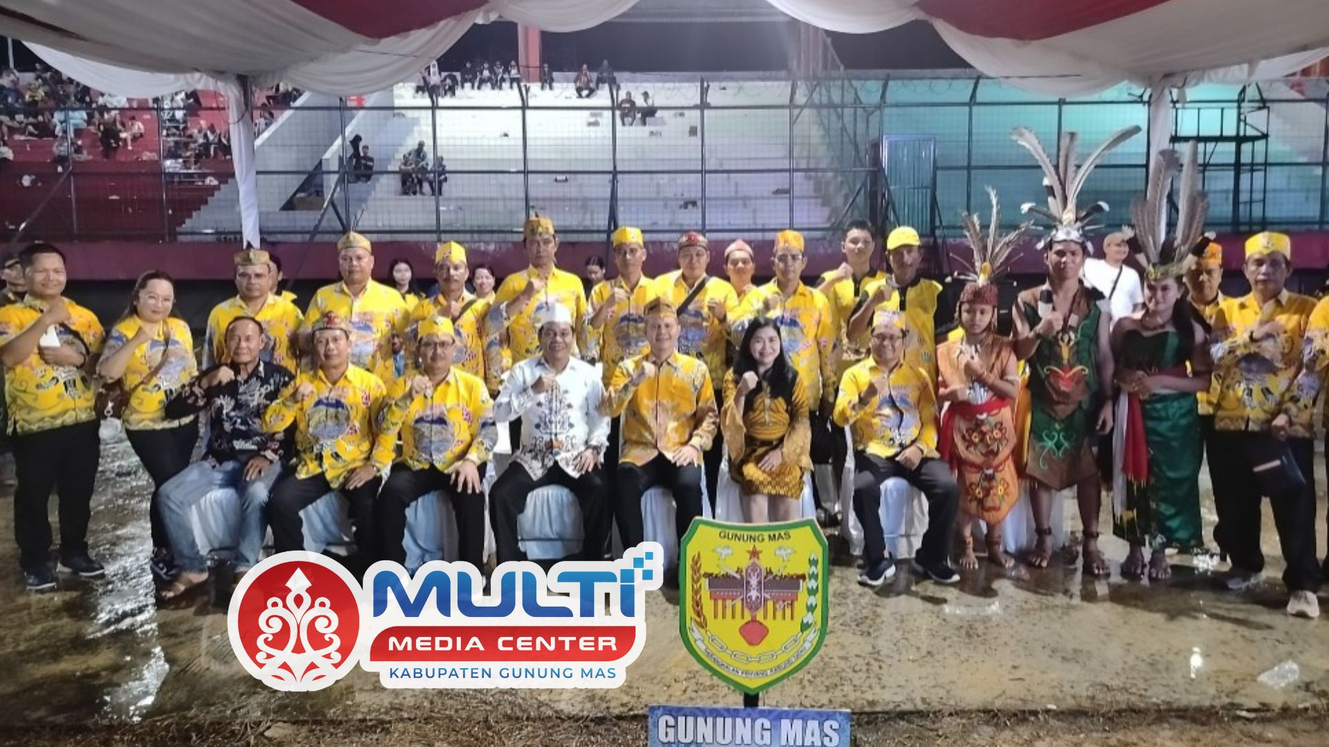 MMCGumas – Palangkaraya – Meski diguyur hujan, Bupati Gunung Mas Jaya Samaya Monong tetap semangat menghadiri acara pembukaan Festival Budaya Isen Mulang (FBIM) Tahun 2025 yang digelar di Stadion Tuah Pahoe, Jalan Tjilik Riwut, Palangka Raya, Sabtu (17/5/2025). Turut mendampingi, sang istri yang juga Ketua TP-PKK Kabupaten Gunung Mas, Mimie Mariatie Jaya S. Monong.