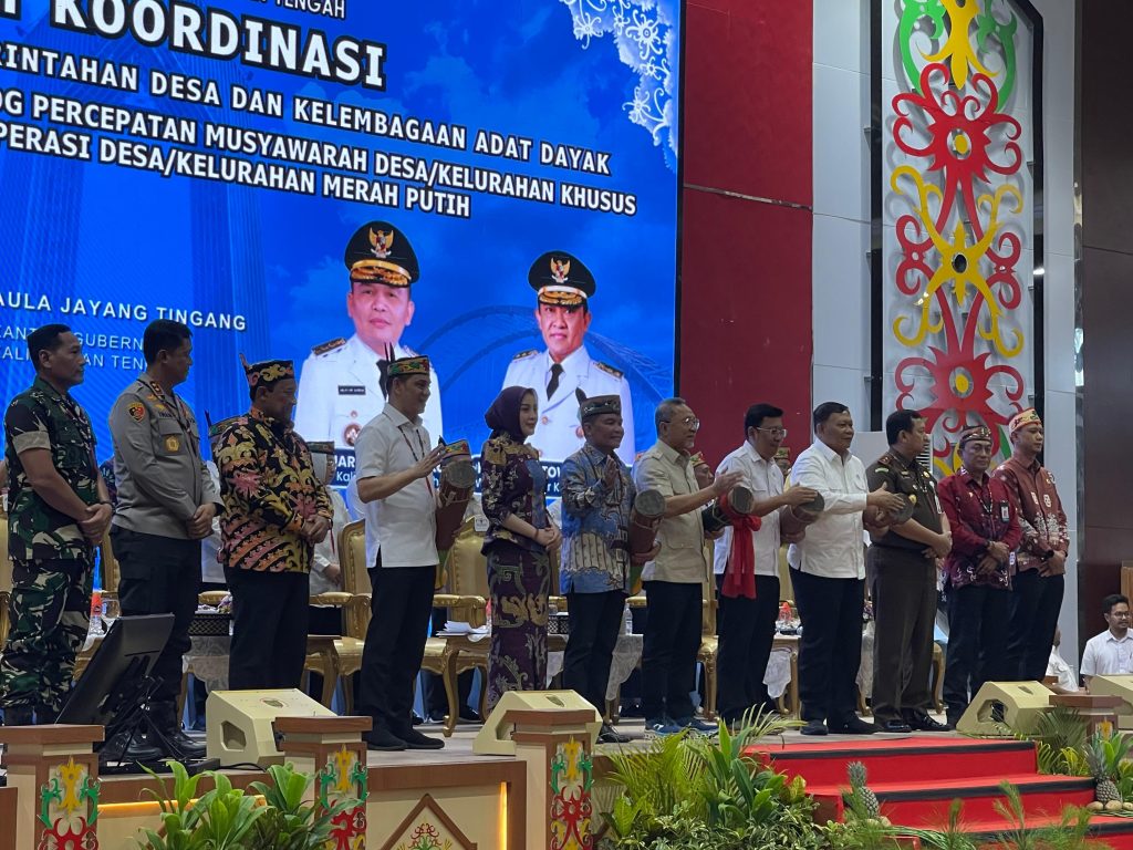 MMCGumas – Palangka Raya – Bupati Gunung Mas, Jaya Samaya Monong, menghadiri Rapat Koordinasi Penyelenggaraan Pemerintahan Desa sekaligus Peluncuran dan Dialog Percepatan Musyawarah Desa/Kelurahan khusus pembentukan Koperasi Desa/Kelurahan Merah Putih. Kegiatan ini digelar oleh Pemerintah Provinsi Kalimantan Tengah di Aula Jayang Tingang Lantai II Kantor Gubernur Kalimantan Tengah, Jalan RTA Milono No. 1, Palangka Raya, (22/5/2025).