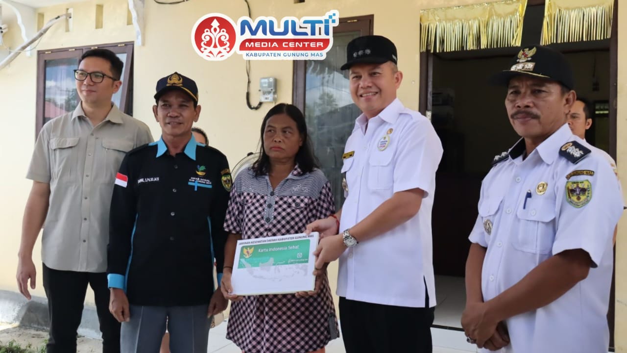 MMCGumas – Rabu, 4 Juni 2025 – Bupati Gunung Mas, Jaya Samaya Monong, menyerahkan secara simbolis kartu Jaminan Kesehatan Daerah (BPJS Kesehatan) dan Jaminan Sosial Ketenagakerjaan (BPJS Ketenagakerjaan) kepada perwakilan warga Desa Dandang, Kecamatan Kahayan Hulu Utara (Kahut), pada Rabu (4/6/2025). Kegiatan ini merupakan bagian dari program 100 hari kerja Bupati dan Wakil Bupati Gunung Mas periode 2025–2030.