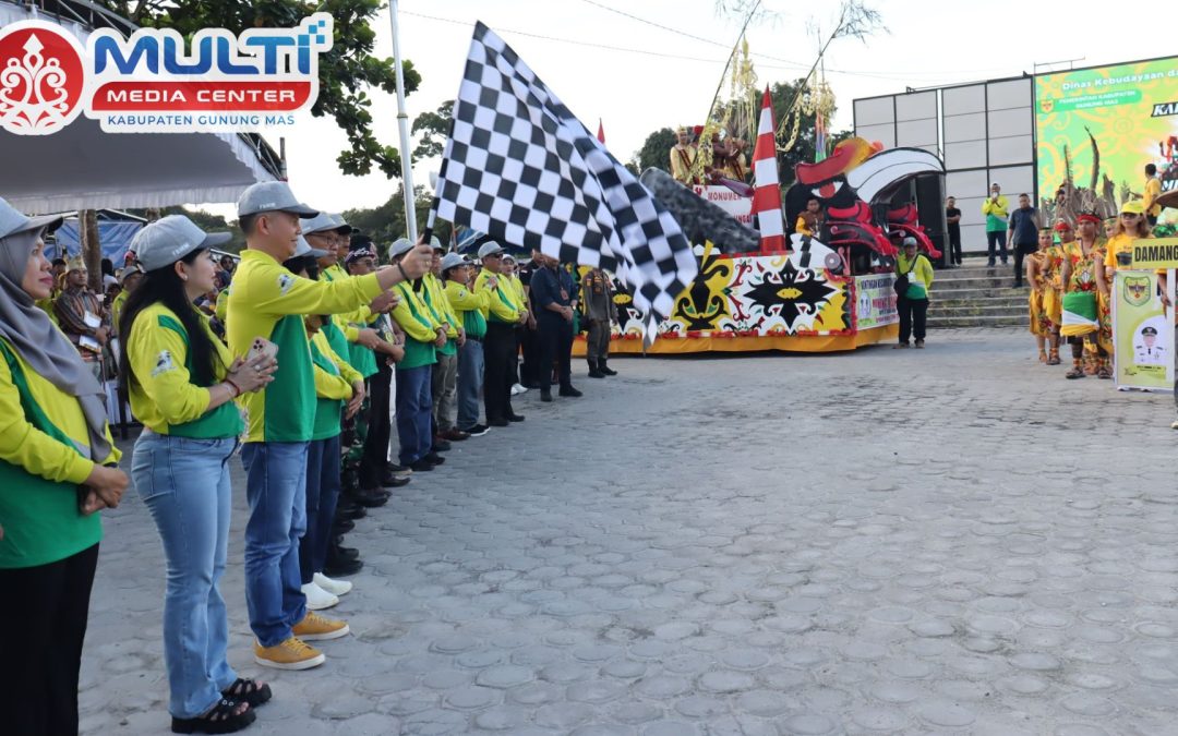 MMCGumasKuala Kurun, Selasa 17 Juni 2025 — Bupati Gunung Mas, Jaya Samaya Monong, secara resmi melepas peserta pawai dalam sebuah seremoni pembukaan yang juga dihadiri oleh Wakil Bupati Efrensia L.P. Umbing, unsur Forkopimda, tokoh adat, dan ribuan warga dari berbagai penjuru kecamatan.
