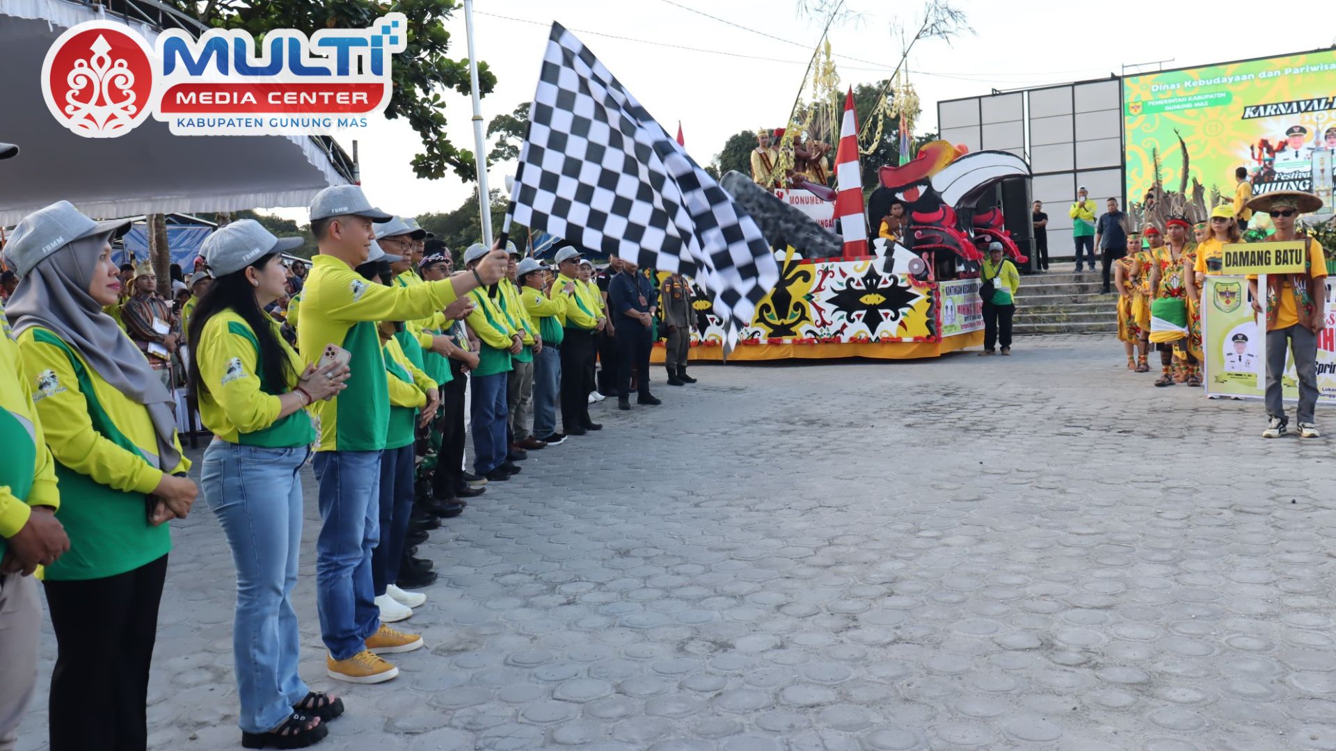 Ribuan masyarakat tumpah ruah memadati Taman Kota hingga sepanjang jalan menuju Lapangan Isen Mulang, Kuala Kurun, untuk menyaksikan kemeriahan Karnaval Pawai Budaya Tambun Bungai. Acara ini merupakan bagian dari rangkaian perayaan Hari Ulang Tahun (HUT) ke-23 Kabupaten Gunung Mas yang digelar dengan penuh semangat kebudayaan dan kebersamaan.