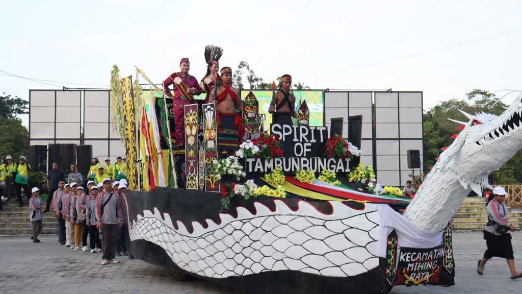 Pawai budaya yang berlangsung semarak ini diikuti oleh perwakilan dari seluruh 12 kecamatan di wilayah Kabupaten Gunung Mas. Setiap kontingen menampilkan atraksi budaya yang kental dengan nuansa kearifan lokal, mengangkat tema besar Tambun Bungai, yang merupakan simbol kekuatan dan kebanggaan masyarakat Dayak.
