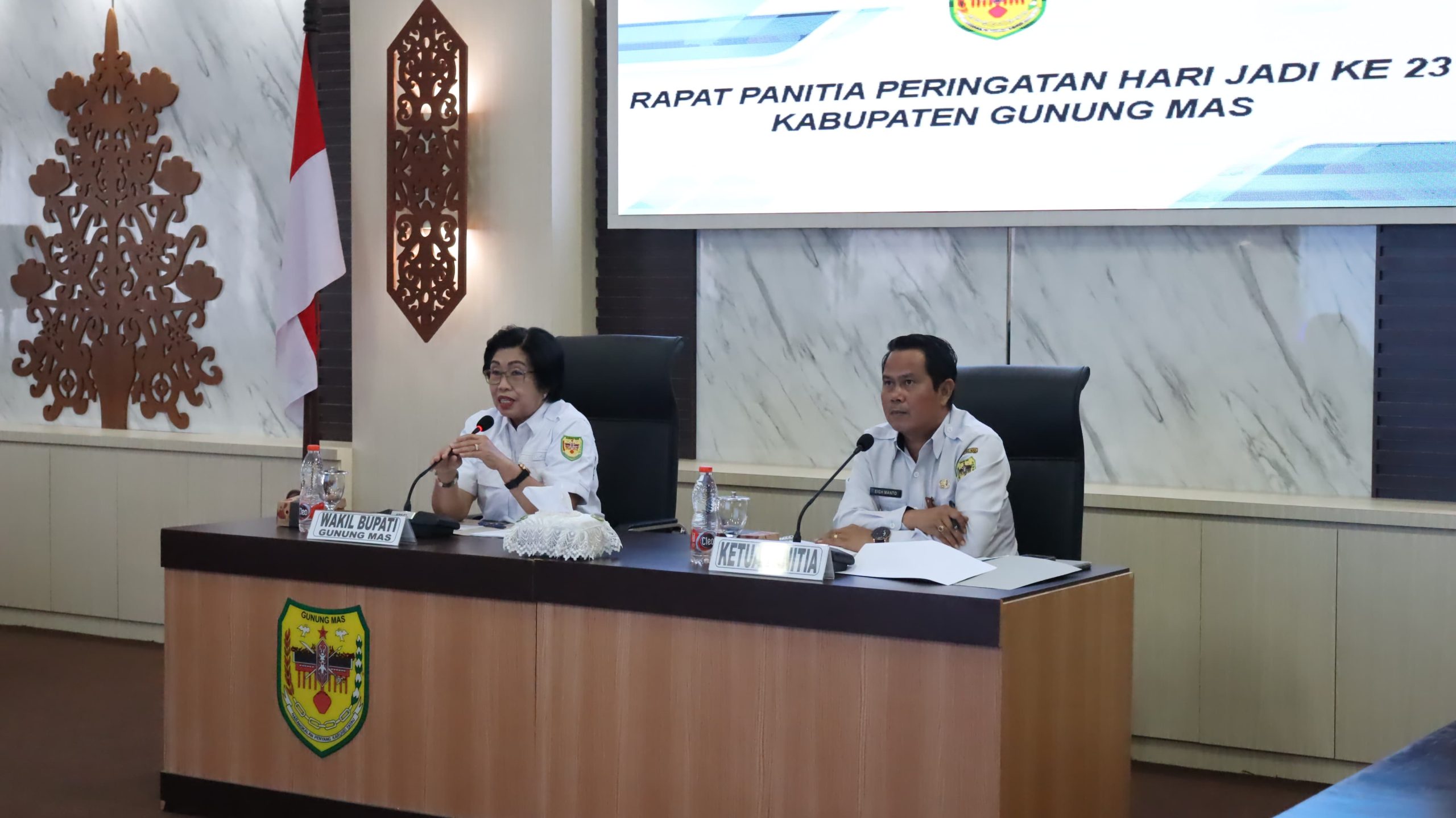 MMCGumas – Kuala Kurun – Wakil Bupati Gunung Mas (Gumas), Efrensia L.P Umbing, memimpin langsung rapat persiapan menjelang peringatan Hari Jadi ke-23 Kabupaten Gunung Mas tahun 2025. Rapat tersebut membahas agenda mengenai persiapan Upacara dan Penutupan Pameran UMKM serta Festival Budaya Mihing Manasa yang menjadi bagian dari rangkaian kegiatan tahunan daerah.