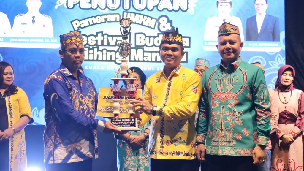 MMCGumas – Kuala Kurun – Bupati Gunung Mas (Gumas), Jaya Samaya Monong, secara resmi menutup rangkaian kegiatan Pameran UMKM dan Festival Budaya Mihing Manasa (FBMM) yang berlangsung meriah dalam rangka memperingati Hari Jadi Kabupaten Gunung Mas ke-23. Acara penutupan ini turut dihadiri oleh Wakil Bupati Efrensia L.P. Umbing, unsur Forkopimda, Ketua dan Anggota DPRD Gunung Mas, serta masyarakat yang memadati area kegiatan Stadion Mini Kuala Kurun, Sabtu (21/6/2025), malam.