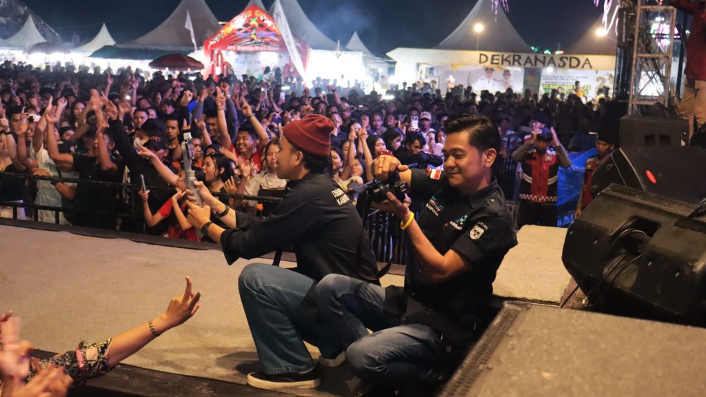 Masyarakat yang hadir tampak antusias dan bahagia bisa menyaksikan langsung aksi panggung musisi idolanya. Tidak sedikit yang mengabadikan momen tersebut melalui ponsel pintar mereka, menjadikan malam itu sebagai kenangan tak terlupakan.