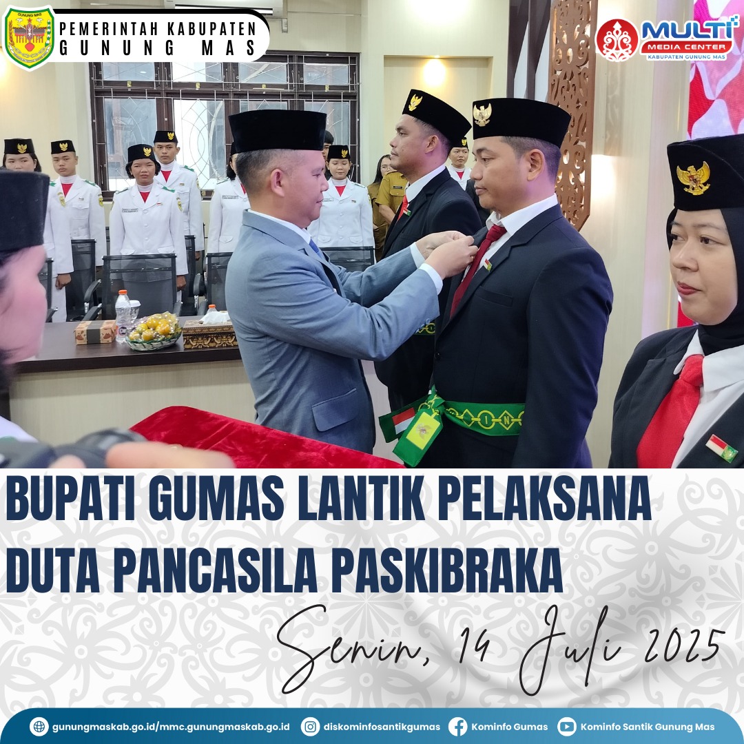 MMCGumas – Kuala Kurun – Sebanyak tujuh Pelaksana Duta Pancasila Paskibraka Indonesia (DPPI) Kabupaten Gunung Mas secara resmi dilantik oleh Bupati Gunung Mas, Jaya Samaya Monong, untuk masa tugas periode 2025–2029. Pelantikan ini menandai komitmen kuat daerah dalam menanamkan nilai-nilai luhur Pancasila kepada generasi muda sebagai pilar ideologi bangsa.