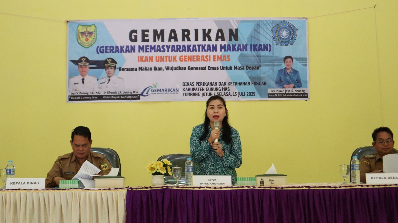 Dalam rangka mendorong pola konsumsi pangan bergizi, Dinas Perikanan dan Ketahanan Pangan bersama dengan Tim Penggerak PKK Kabupaten Gunung Mas menggelar kegiatan GEMARIKAN (Gerakan Memasyarakatkan Makan Ikan) di Desa Tumbang Jutuh pada Selasa, 15 Juli 2025.