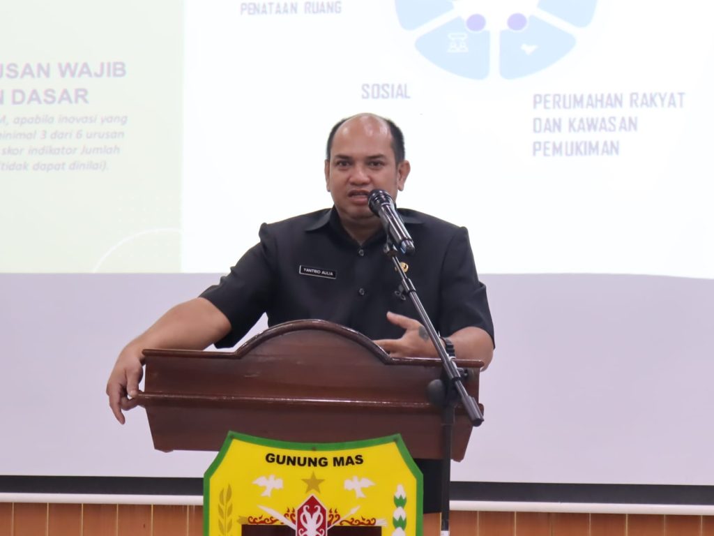 Foto : Bupati Gunung Mas (Gumas), Jaya Samaya Monong, membuka secara resmi Lomba Inovasi Daerah Kabupaten Gunung Mas Tahun 2025 yang berlangsung di Aula Bapperida, Rabu (23/7/2025).