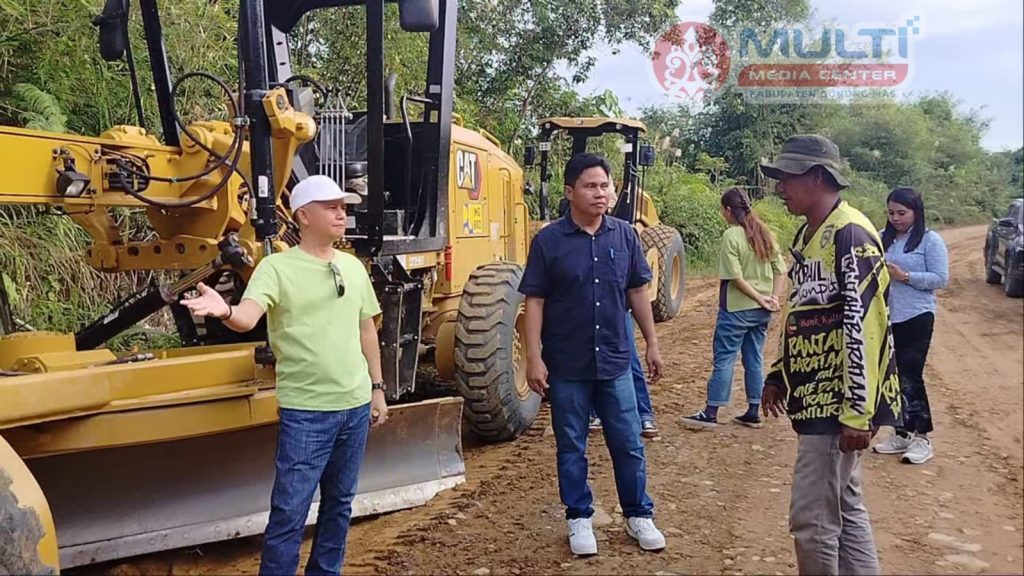 MMCGumas – Miri Manasa – Bupati Gunung Mas, Jaya Samaya Monong, didampingi jajaran Dinas Pekerjaan Umum Kabupaten Gunung Mas, melakukan peninjauan langsung terhadap kegiatan perbaikan ruas jalan dari Desa Tumbang Sian menuju Kelurahan/Desa Tumbang Napoi pada Minggu (27/7/2025) siang.