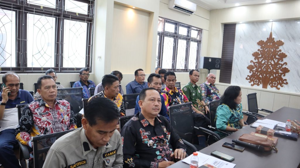 Foto Bersama : Sekda Gunung Mas, Richard bersama LPPM Universitas Palangkaraya dan seluruh camat se kabupateng Gunung mas, diruang rapat lantai I Kantor Bupati, Jumat (1/8/2025)