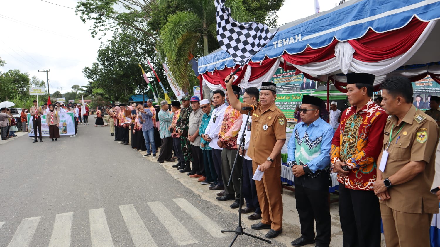 “Dengan memohon ridha Tuhan Yang Maha Esa, saya mewakili Bupati Gunung Mas melepas secara resmi pawai ta’aruf MTQ XVIII tingkat Kabupaten Gunung Mas Tahun 2025 di Kecamatan Tewah. Sekian dan terima kasih. Om santi, santi, santi om. Wassalamu’alaikum warahmatullahi wabarakatuh,” ujarnya mengakhiri sambutan.