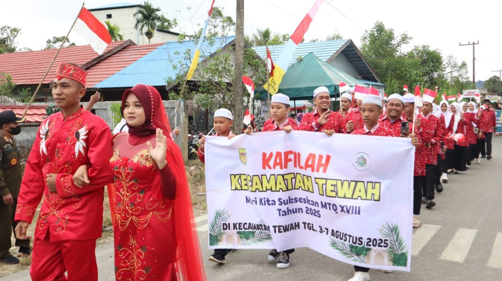 “Dalam kesempatan yang berbahagia ini, tidak henti-hentinya kita memanjatkan puji dan syukur kepada Tuhan Yang Maha Esa. Atas limpahan rahmat dan karunia-Nya, kita dapat mengikuti salah satu rangkaian kegiatan MTQ XVIII tingkat Kabupaten Gunung Mas Tahun 2025, yakni pawai ta’aruf,” ucapnya.