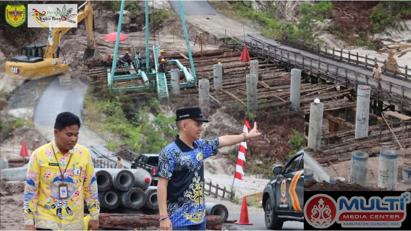 MMCGumasKuala Kurun – Bupati Gunung Mas, Jaya Samaya Monong, meninjau langsung progres pembangunan Jembatan Sei Nango yang berada di jalur lintas Kuala Kurun–Desa Tumbang Miwan, tepatnya di Desa Tewang Pajangan, Kecamatan Kurun, Kamis (14/8/2025). Dalam kunjungan ini, Bupati didampingi Sekretaris Dinas Pekerjaan Umum (PU) Kabupaten Gunung Mas, Bambang Jaya, yang juga merangkap sebagai Kepala Bidang Bina Marga.