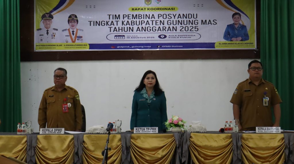 MMCGumas – Kuala Kurun – Pemerintah Kabupaten Gunung Mas melalui Dinas Pemberdayaan Masyarakat dan Desa (DPMD) menggelar Rapat Koordinasi Tim Pembina Posyandu Tingkat Kabupaten Gunung Mas Tahun 2025, yang dilaksanakan di Aula Bapperida Gumas, Selasa (19/8/2025).