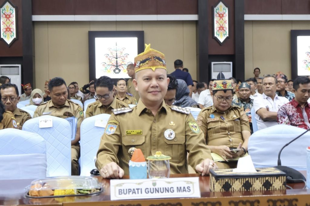 MMCGumas – Palangka Raya – Pemerintah Kabupaten Gunung Mas menyatakan komitmen penuh dalam mendukung kebijakan Pemerintah Provinsi Kalimantan Tengah untuk memperkuat Pendapatan Asli Daerah (PAD) melalui sektor pertambangan. Hal ini disampaikan Bupati Gunung Mas, Jaya Samaya Monong, saat menghadiri Rapat Koordinasi Optimalisasi PAD Sektor Pertambangan Provinsi Kalimantan Tengah Tahun 2025, yang dipimpin langsung oleh Gubernur Kalimantan Tengah, H. Agustiar Sabran, di Aula Jayang Tingang, Kantor Gubernur Kalteng, Rabu (21/10/2025).