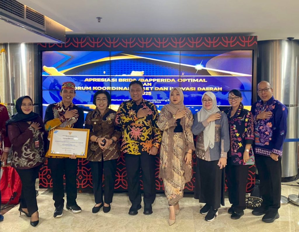 MMCGumas – Kuala Kurun – Pemerintah Kabupaten Gunung Mas kembali menorehkan prestasi di tingkat nasional dengan menerima penghargaan pada kegiatan Apresiasi BRIDA/BAPPERIDA Optimal 2025 yang diselenggarakan oleh Badan Riset dan Inovasi Nasional (BRIN). Kegiatan tersebut berlangsung di Auditorium Sumitro Djojohadikusumo, Gedung B.J. Habibie BRIN, Jakarta (Senin, 27/10/2025).