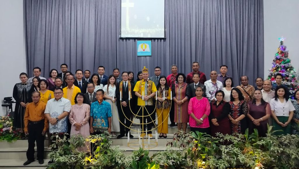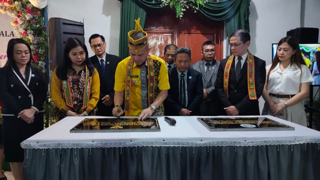 MMCGumas – Kuala Kurun – Bupati Gunung Mas, Jaya Samaya Monong, yang juga menjabat sebagai Ketua Perwakilan majelis Sinode Gunung Mas, didampingi istri, Mimie Mariatie Jaya S. Monong, dan Ketua Umum Sinode Tabernakel Tubuh Kristus, Pdt. Frengkie Jehaziel Tangka, secara resmi meresmikan Gedung Gereja Tabernakel Tubuh Kristus “Kristus Penolong”, pada Selasa malam (11/11/2025) di Kuala Kurun.