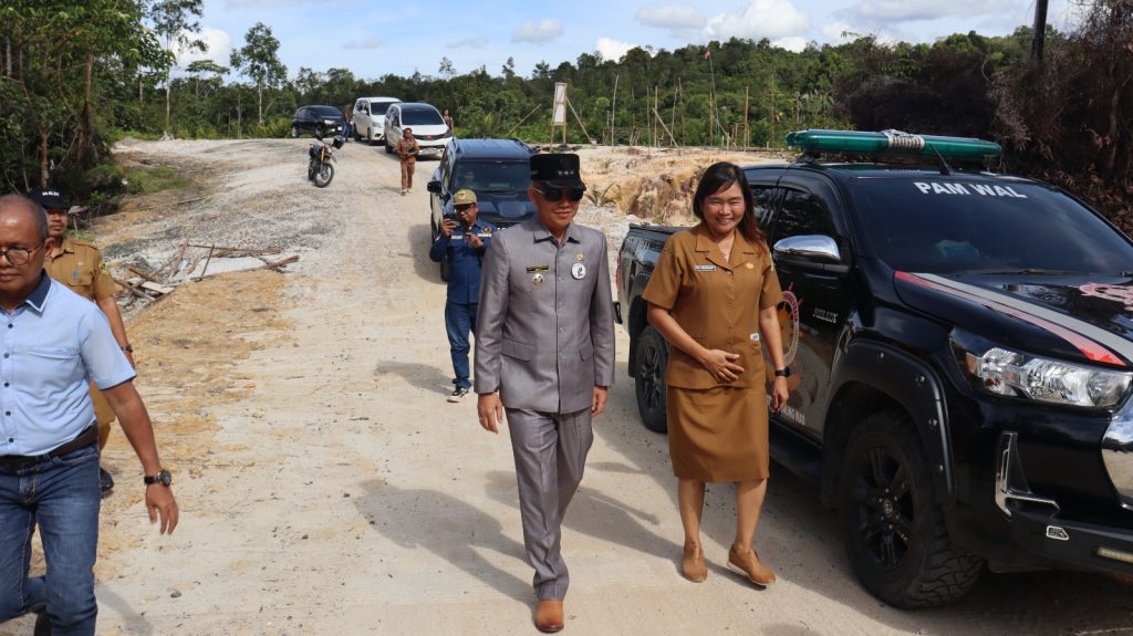 Foto : Bupati Gunung Mas Jaya S. Monong bersama Jajaran Dinas PU, memantau progres peningkatan ruas Jalan Kurun – Sarerangan – Pajangei, pada Senin 24/11/2025