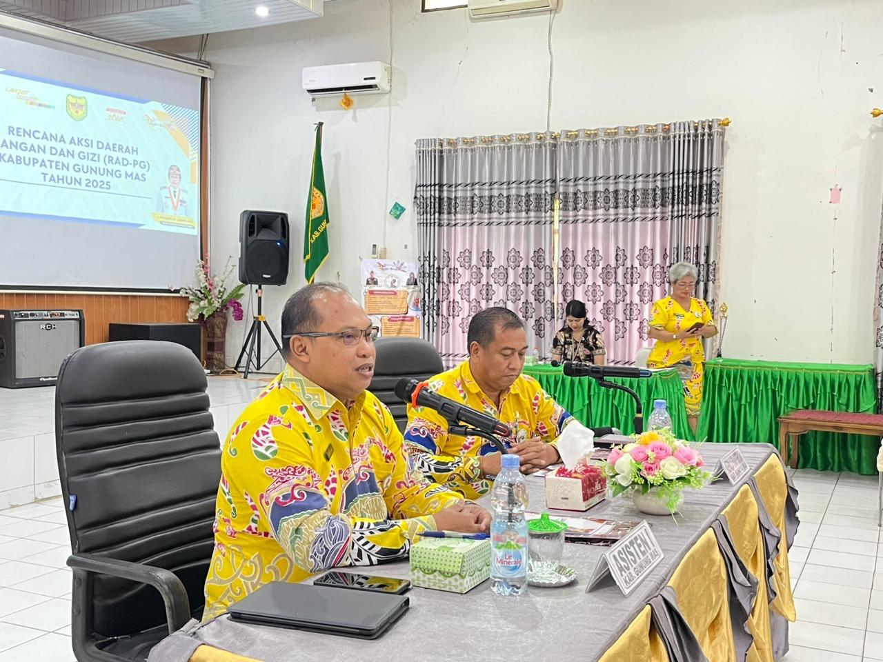 MMCGumas – Kuala Kurun – Pemerintah Kabupaten (Pemkab) Gunung Mas (Gumas) melalui Badan Perencanaan Pembangunan, Riset dan Inovasi Daerah (Bapperida) Gunung Mas, menggelar Rapat Koordinasi Rencana Aksi Daerah Pangan dan Gizi Tahun 2025. Kegiatan tersebut dibuka secara resmi oleh Asisten I Setda Gunung Mas, Ruby Haris, mewakili Sekretaris Daerah, Richard. Rapat tersebut berlangsung di Aula Kantor Bapperida, Kamis (04/12/2025).