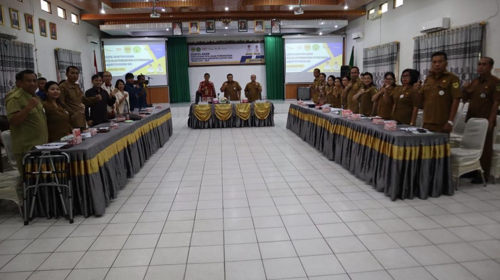MMCGumas – Kuala Kurun – Sekretaris Daerah Kabupaten Gunung Mas, Richard, yang diwakili Asisten III Sekretariat Daerah, Edison, secara resmi membuka kegiatan Ekspos Akhir Penyusunan Peta Jalan Pembangunan Kependudukan Kabupaten Gunung Mas Tahun 2025–2029, Senin (08/12/2025).