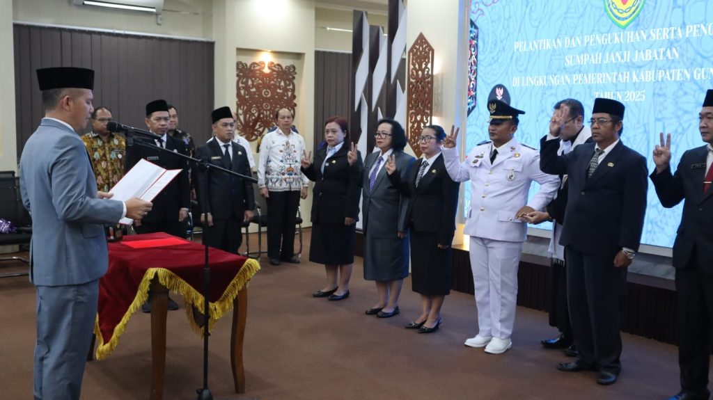 MMCGumas – Kuala Kurun – Pemerintah Kabupaten (Pemkab) Gunung Mas melaksanakan Pelantikan dan Pengukuhan Pejabat Administrator serta Pejabat Fungsional, yang dirangkaikan dengan Serah Terima Jabatan Ketua Tim Penggerak PKK Kecamatan Damang Batu. Kegiatan berlangsung di Aula Bupati Lantai I, Selasa (9/12/2025), dan dipimpin langsung oleh Bupati Gunung Mas, Jaya Samaya Monong.