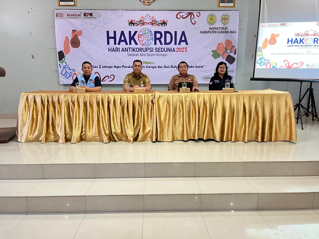 Dalam rangka HAKORDIA 2025, Inspektorat Kabupaten Gunung Mas melaksanakan berbagai kegiatan edukatif yang melibatkan pelajar, guru, serta pemangku kepentingan di bidang pendidikan. Salah satu kegiatan utama adalah Lomba Video Pendek Edukasi bertema “Aksi Jujurku untuk Kabupaten Gunung Mas” yang diikuti oleh pelajar SMP dan SMA sederajat sebagai wadah kreativitas dalam menyampaikan pesan integritas dan antikorupsi melalui media digital.