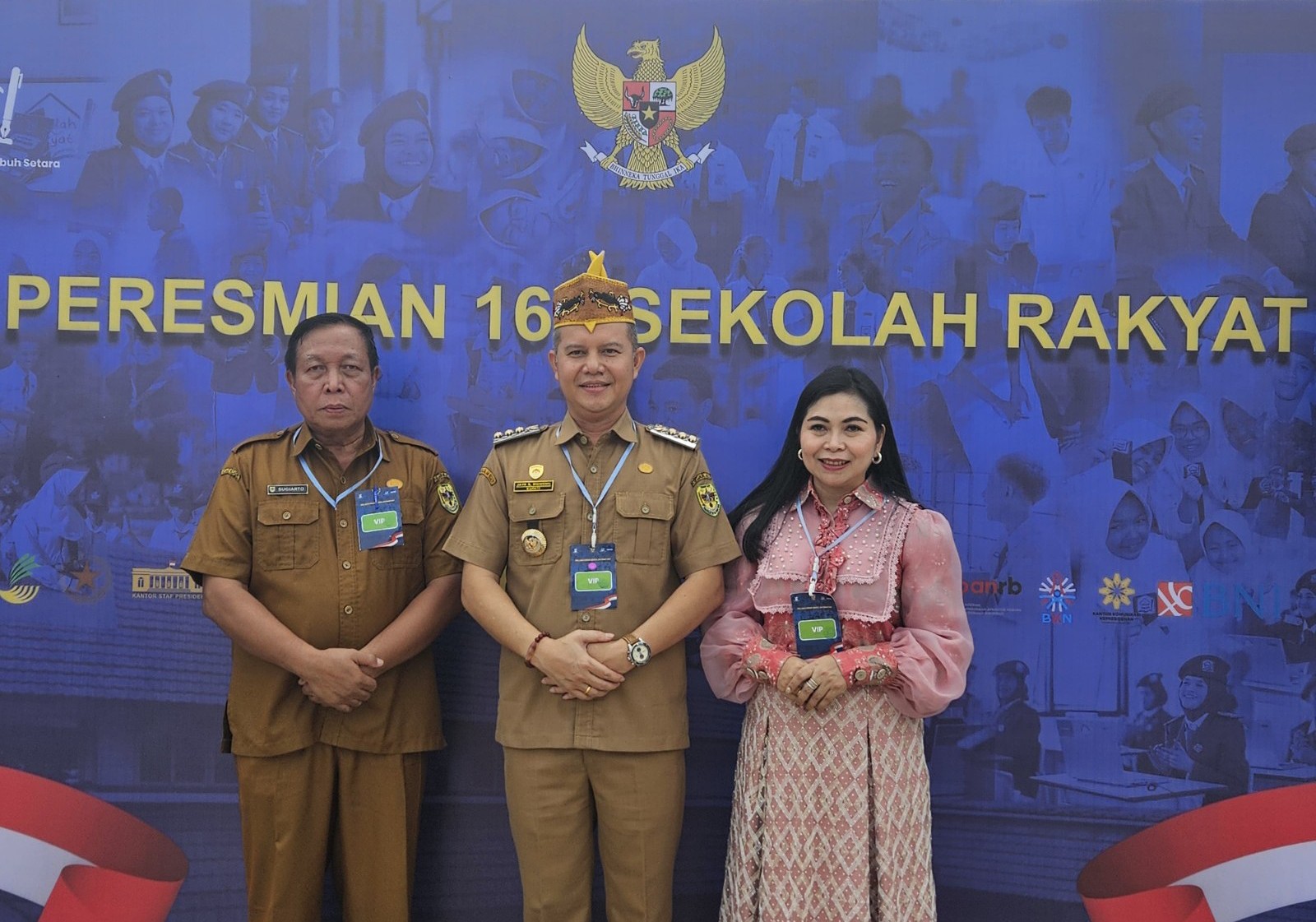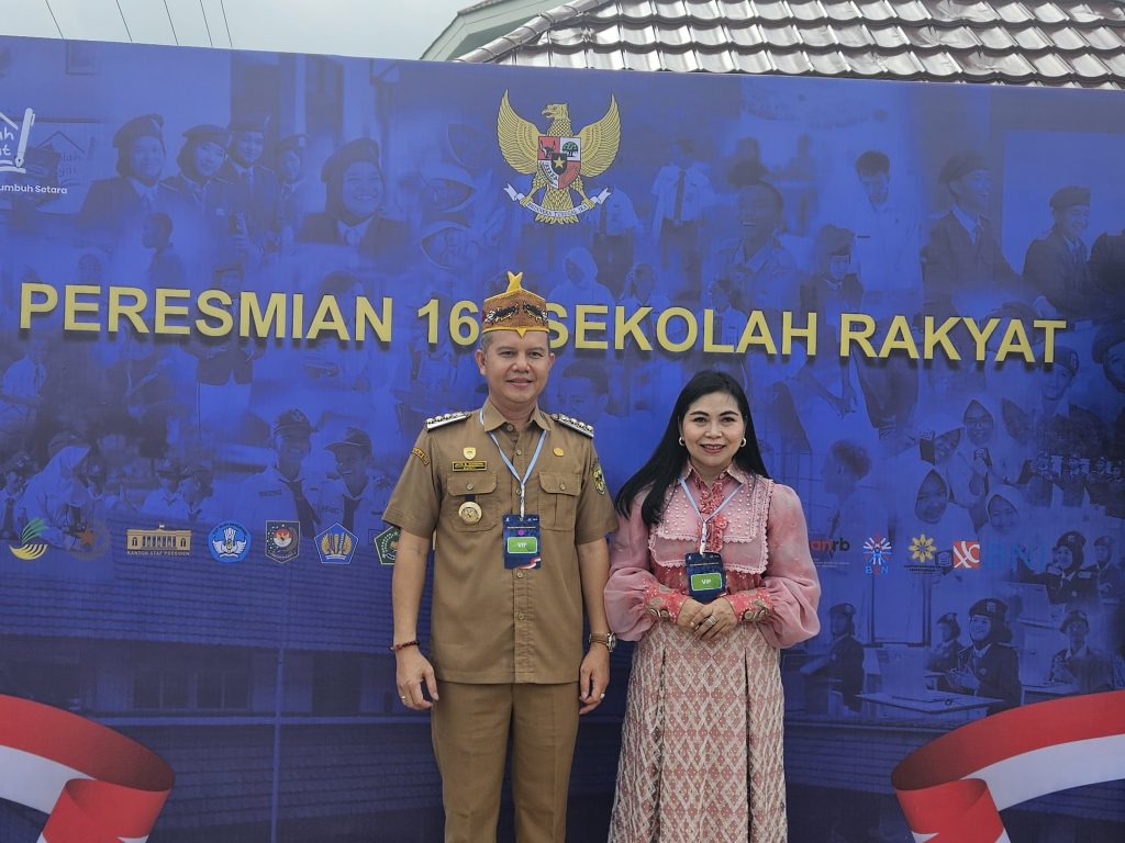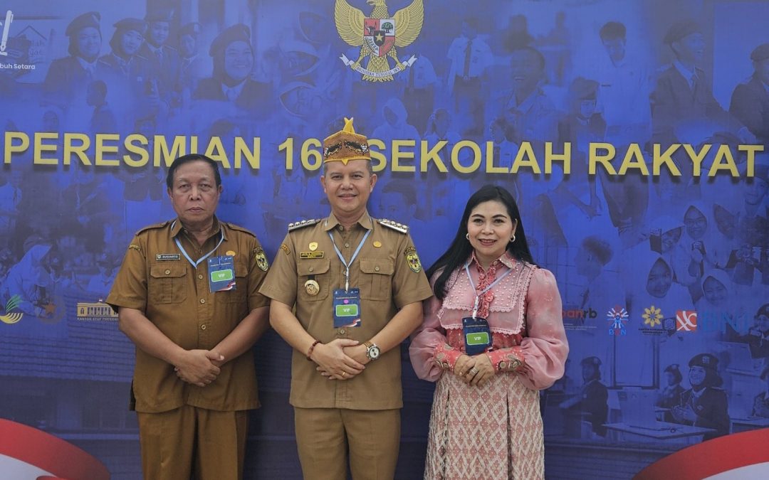MMCGumas – Banjarbaru – Bupati Gunung Mas Jaya Samaya Monong bersama istri selaku Bunda Genre Kabupaten Gunung Mas, Mimie Mariatie Jaya S. Monong, serta Kepala Dinas Sosial Kabupaten Gunung Mas, Sugiarto, menghadiri acara Peresmian 166 Sekolah Rakyat yang tersebar di 34 provinsi di seluruh Indonesia, Senin (12/1/2026).