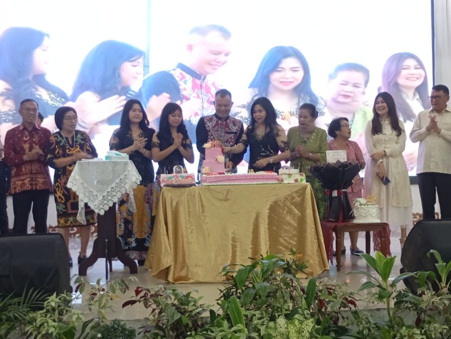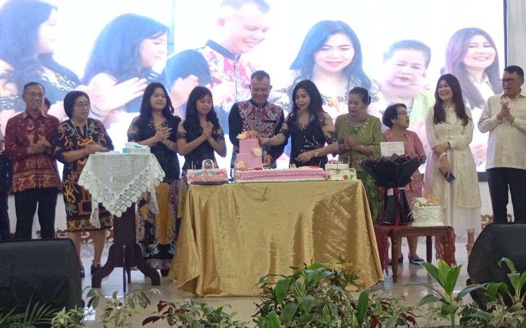 Usai ibadah, acara dilanjutkan dengan tiup lilin dan potong kue ulang tahun pernikahan yang dilakukan oleh Bupati Gunung Mas, didampingi oleh istri dan anak, disambut dengan doa serta ucapan selamat dari para tamu undangan.