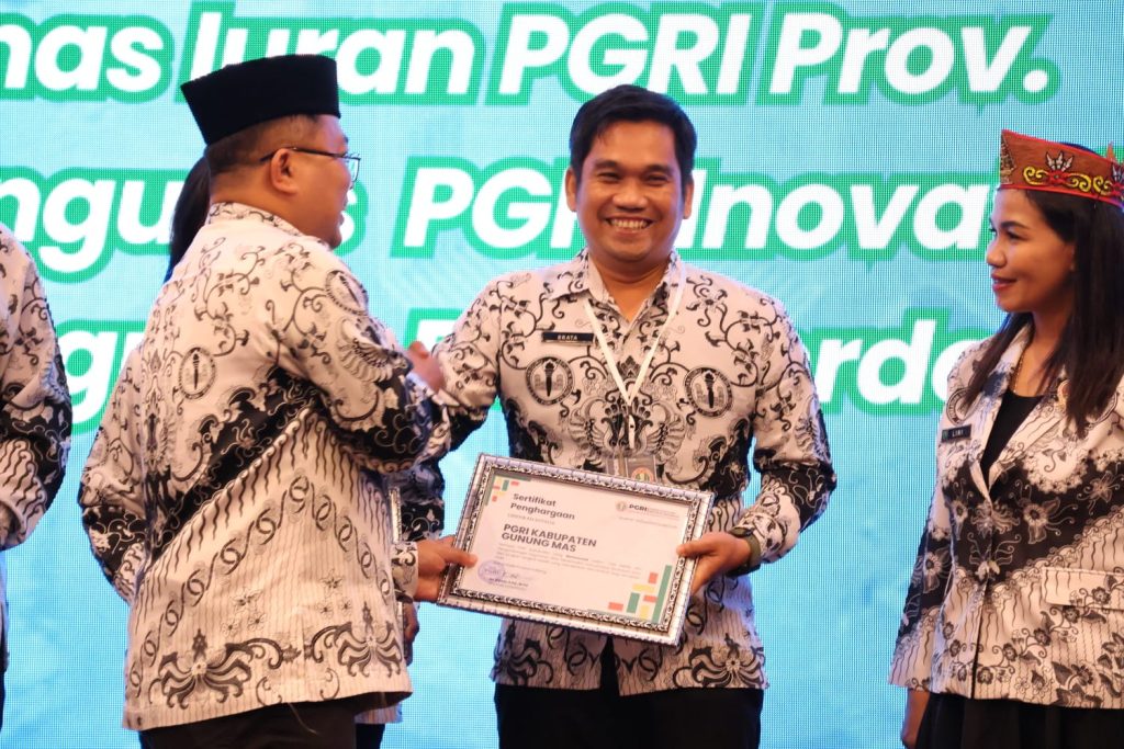 Dalam kegiatan tersebut, PGRI Kabupaten Gunung Mas berhasil meraih penghargaan PGRI Inovatif, sebagai bentuk apresiasi atas komitmen dan terobosan organisasi dalam mendukung peningkatan mutu pendidikan serta pengembangan kapasitas guru di daerah.