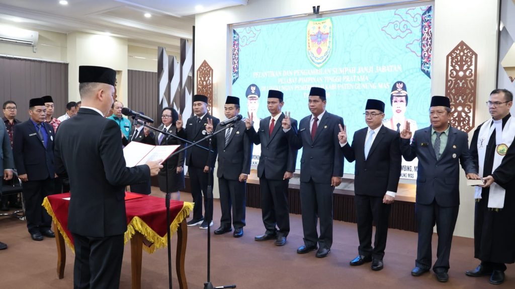 MMCGumas – Kuala Kurun – Bupati Gunung Mas, Jaya Samaya Monong, secara resmi melantik dan mengambil sumpah/janji jabatan Pejabat Pimpinan Tinggi Pratama di lingkungan Pemerintah Kabupaten Gunung Mas. Pelantikan tersebut dilaksanakan di Aula Lantai 1 Kantor Bupati Gunung Mas, Jumat malam (13/02/2026).