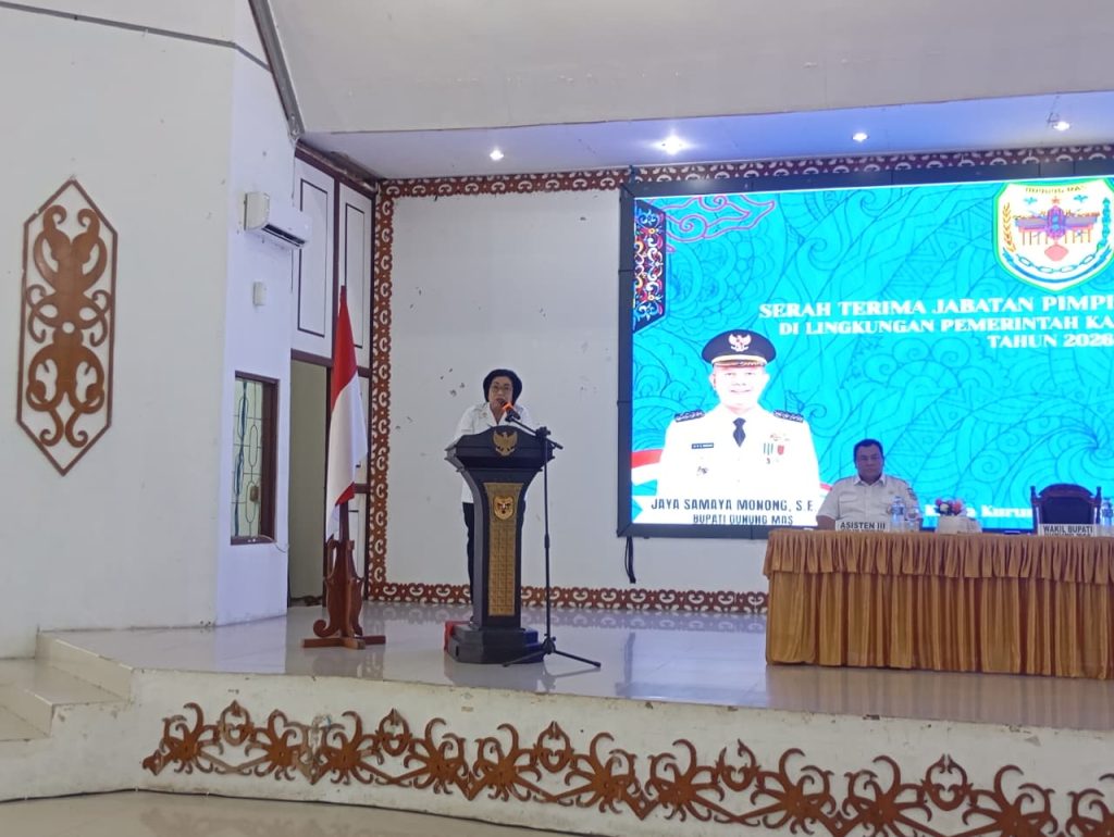 MMCGumas – Kuala Kurun – Wakil Bupati Gunung Mas, Efrensia L. P. Umbing, memimpin acara Serah Terima Jabatan (Sertijab) Pejabat Tinggi Pratama di lingkungan Pemerintah Kabupaten Gunung Mas, yang dilaksanakan di Aula GPU Damang Batu, Rabu pagi (18/2/2026).