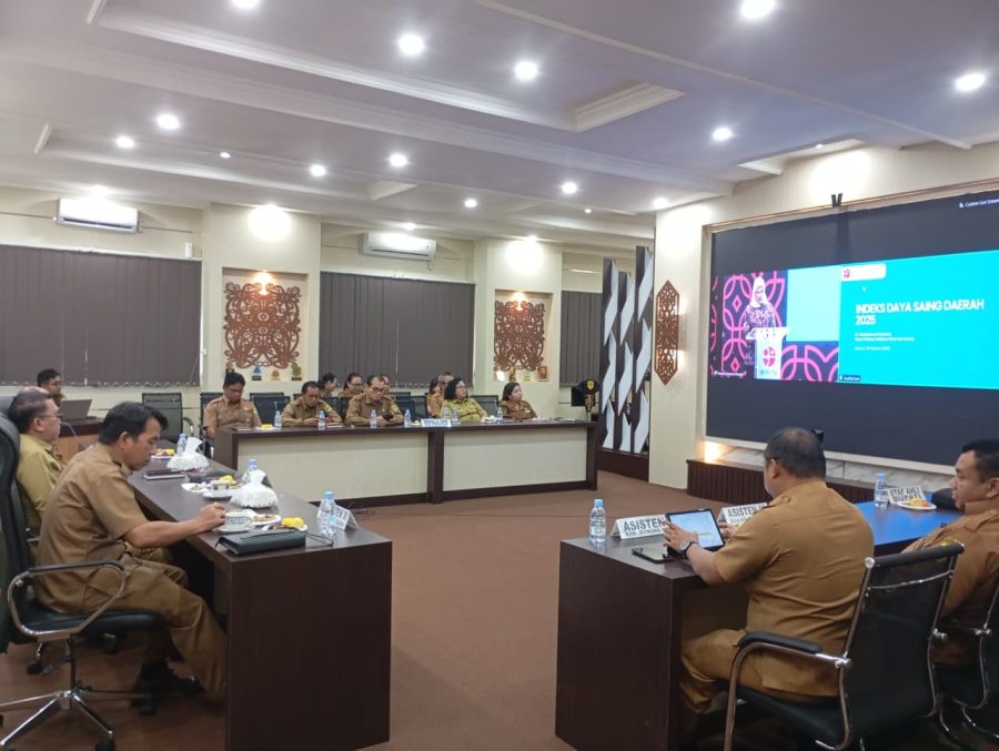 MMCGumas – Kuala Kurun – Sekretaris Daerah Kabupaten Gunung Mas, Richard, mengikuti acara pembukaan Rilis Indeks Daya Saing Daerah (IDSD) Tahun 2025 yang diselenggarakan oleh Badan Riset dan Inovasi Nasional (BRIN) secara virtual melalui Zoom Meeting, bertempat di Ruang Rapat Lantai I Kantor Bupati Gunung Mas, Selasa (24/2/2026).
