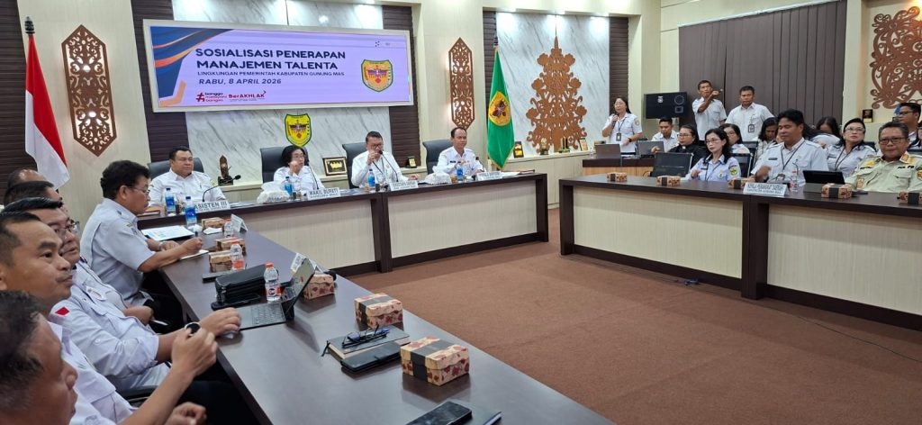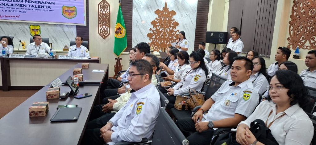 MMCGumas – Kuala Kurun – Wakil Bupati Gunung Mas, Efrensia L.P. Umbing, bersama Badan Kepegawaian dan Pengembangan Sumber Daya Manusia (BKPSDM) menggelar sosialisasi penerapan manajemen talenta Aparatur Sipil Negara (ASN) di Aula Kantor Bupati Gunung Mas Lantai I, Rabu (8/4/2026).