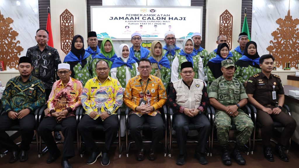 MMCGumas – Kuala Kurun – Pemerintah Kabupaten Gunung Mas melaksanakan kegiatan pemberangkatan Jamaah Calon Haji Tahun 1447 Hijriah/2026 Masehi yang dilaksanakan di Aula Lantai I Kantor Bupati Gunung Mas, Kamis (23/4/2026).